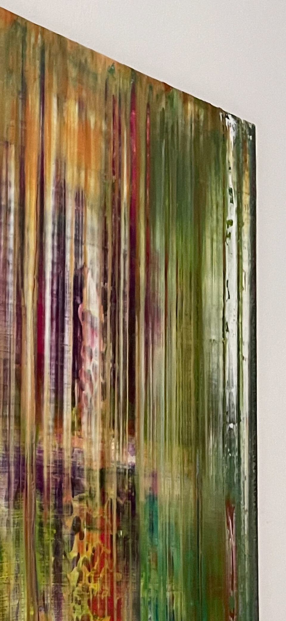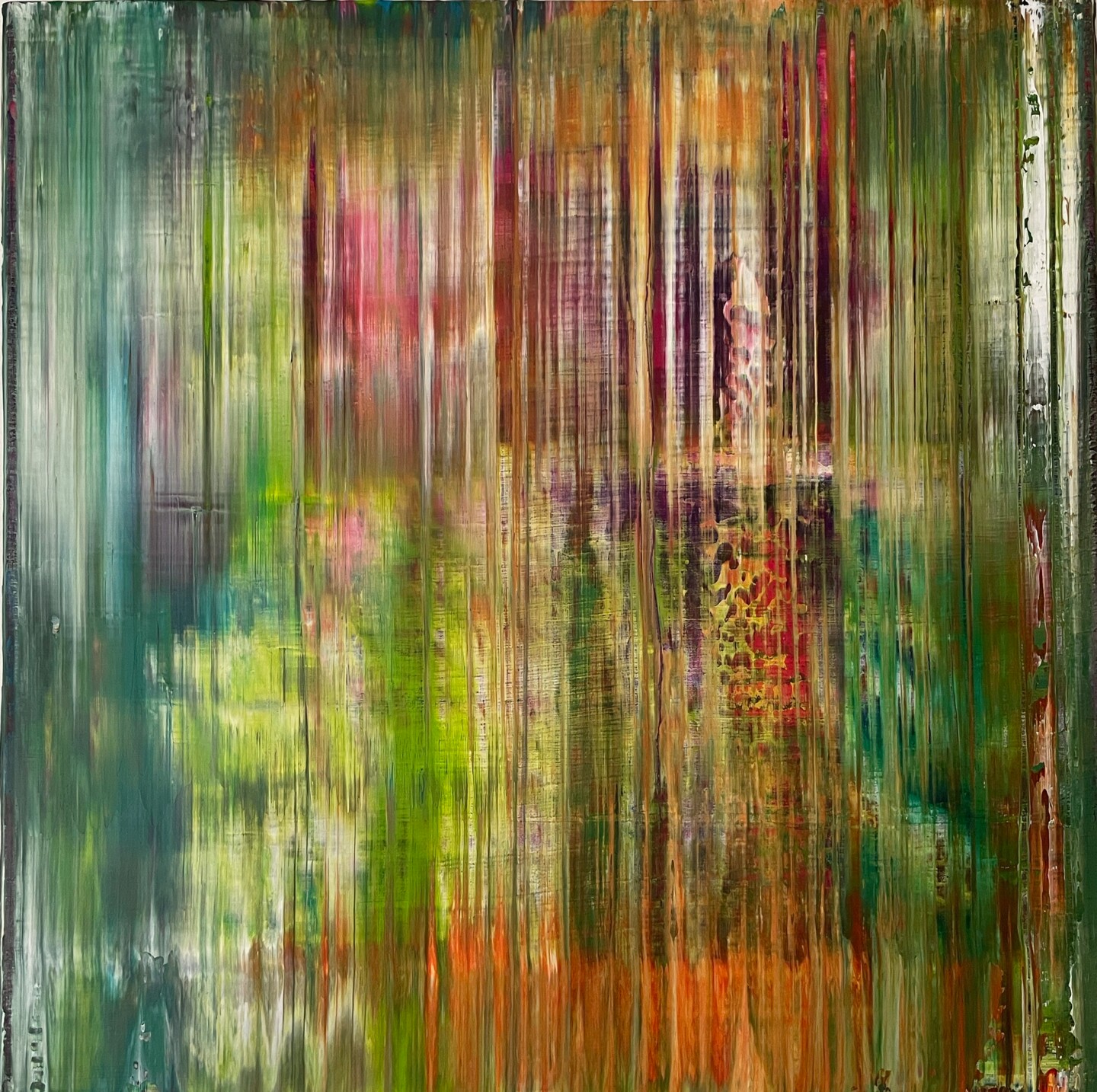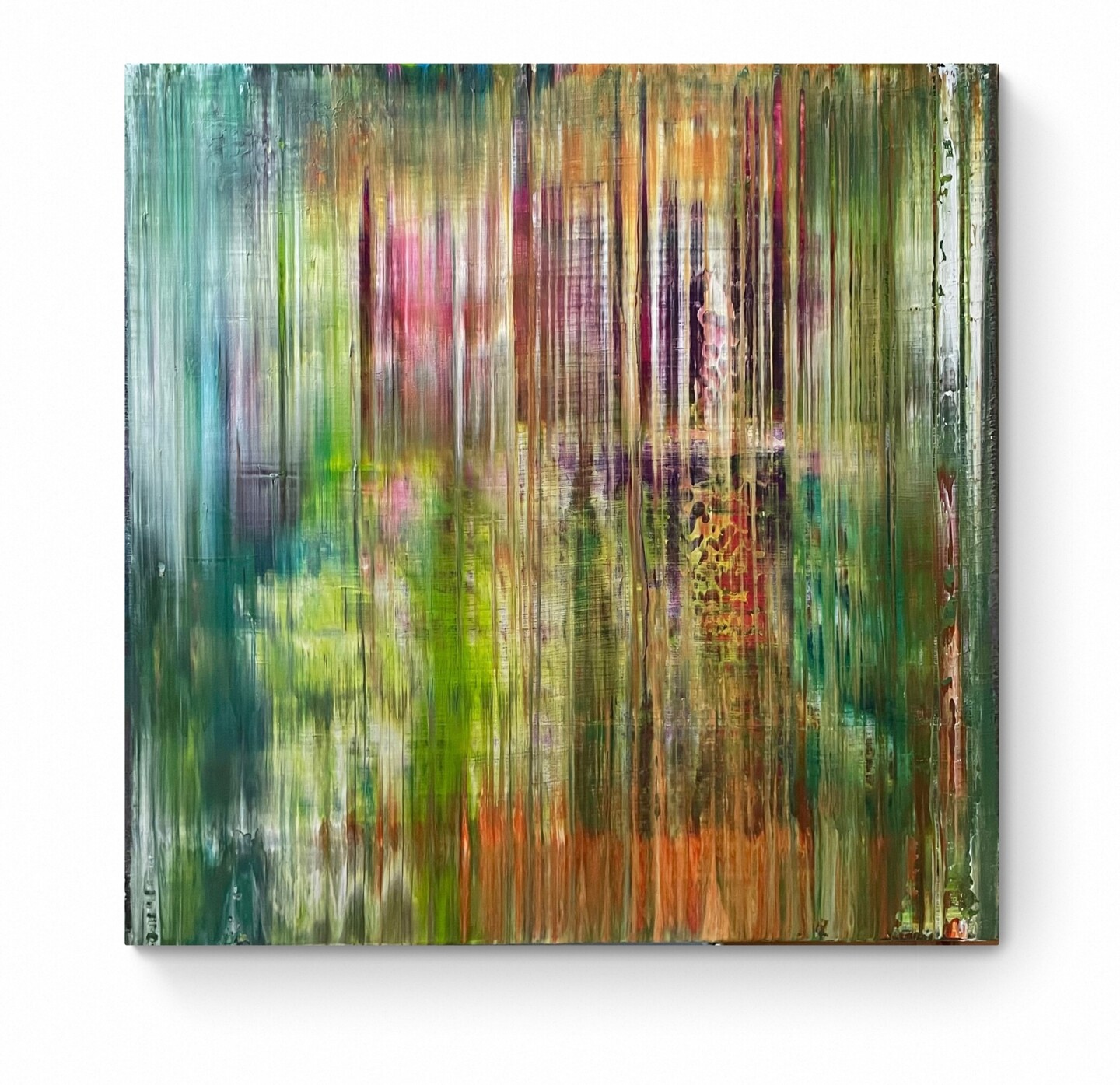 Painting created by the use of quality acrylic paint with the use of palette knifes and large squeegees.