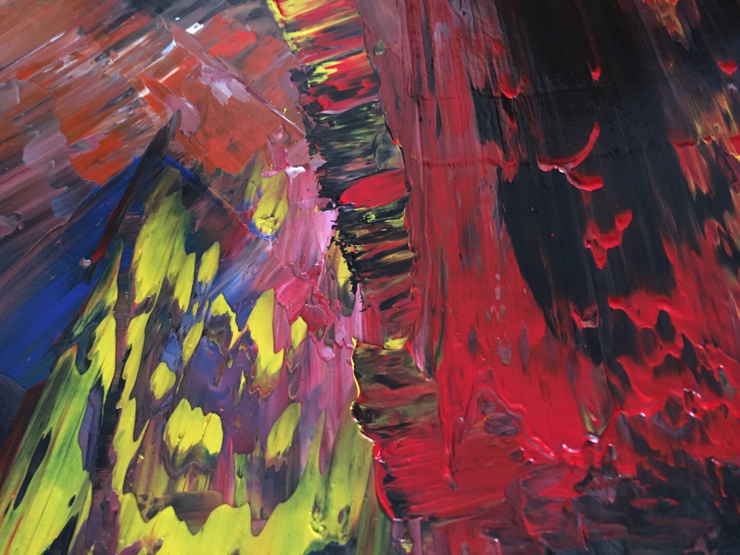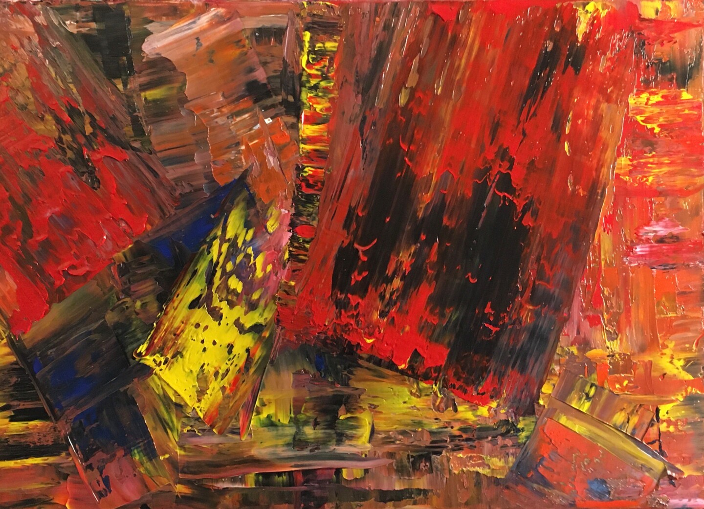 Created by the use of quality oil paint with the use of palette knives and self-made large squeegees.